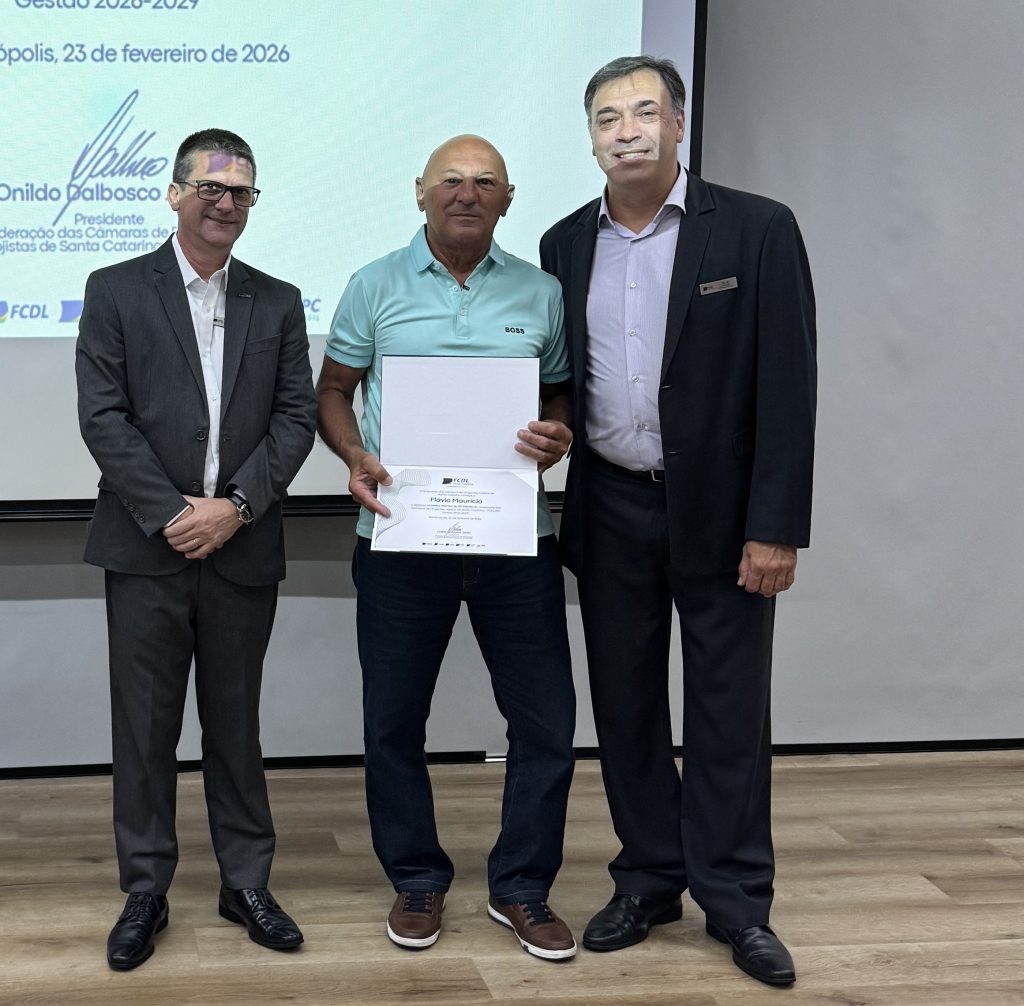 Na última segunda-feira, 23 de fevereiro de 2026, o empresário lojista Flávio Maurício tomou posse como Diretor Distrital do 31º Distrito da Federação das Câmaras de Dirigentes Lojistas de Santa Catarina (FCDL/SC). A cerimônia ocorreu durante reunião realizada em Florianópolis, reunindo lideranças do setor lojista catarinense. O mandato segue até 2029.